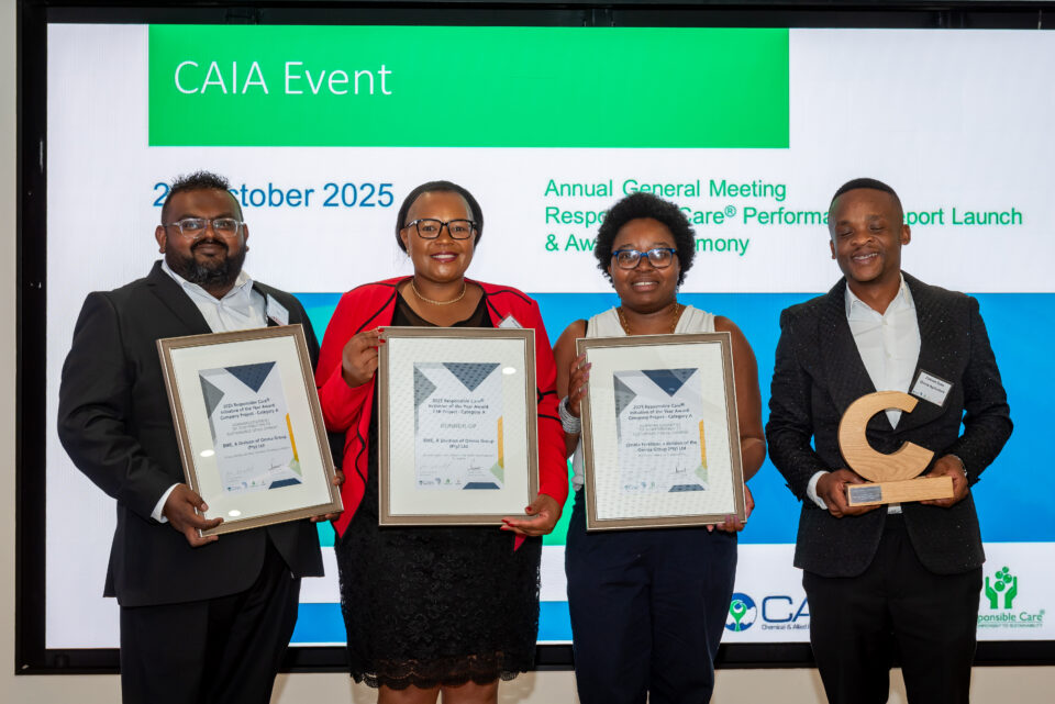 Omnia Holdings company BME’s strong commitment to social development, a fundamental part of its operational excellence, led to the company being recognised as a runner–up at this year’s annual Chemical and Allied Industries Association (CAIA) Responsible Care awards.