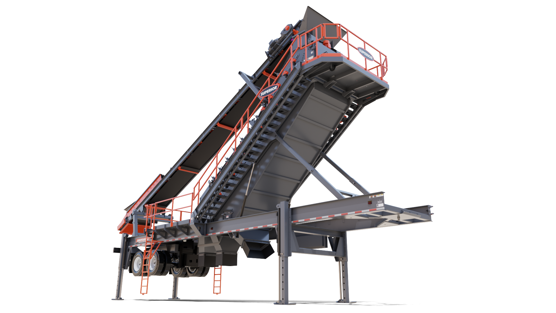 Superior’s redesigned self-contained stacker delivers dependable performance at a competitive price point. Updates to the truss depth, power supply, and load zone hopper improve efficiency while the onboard engine powers up to 500 TPH. A steeper angle creates larger stockpiles in less space. Visitors will see a 36″ × 80′ model with hydraulic controls for the hopper wings, undercarriage, and folding head section.