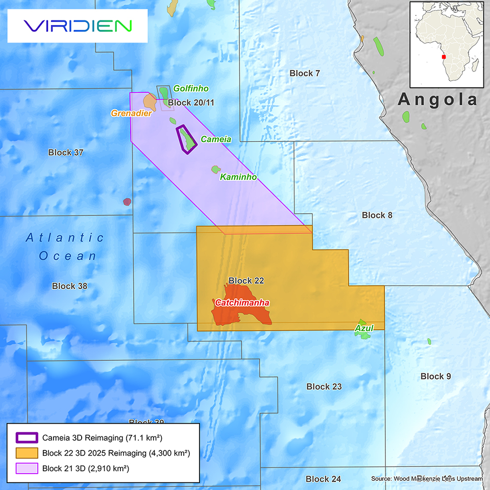 Viridien has announced a new multi-client seismic reimaging program over Angola’s highly prospective offshore block 22 to support the country’s upcoming licensing round. The 4,300 sq km high-end data set will bring valuable insight into underexplored structures along the Atlantic Hinge zone, following the same trend as the proven Cameia and Golfinho fields. Fast-track results are scheduled for delivery in Q1 2026 and final products in Q3/Q4 2026.