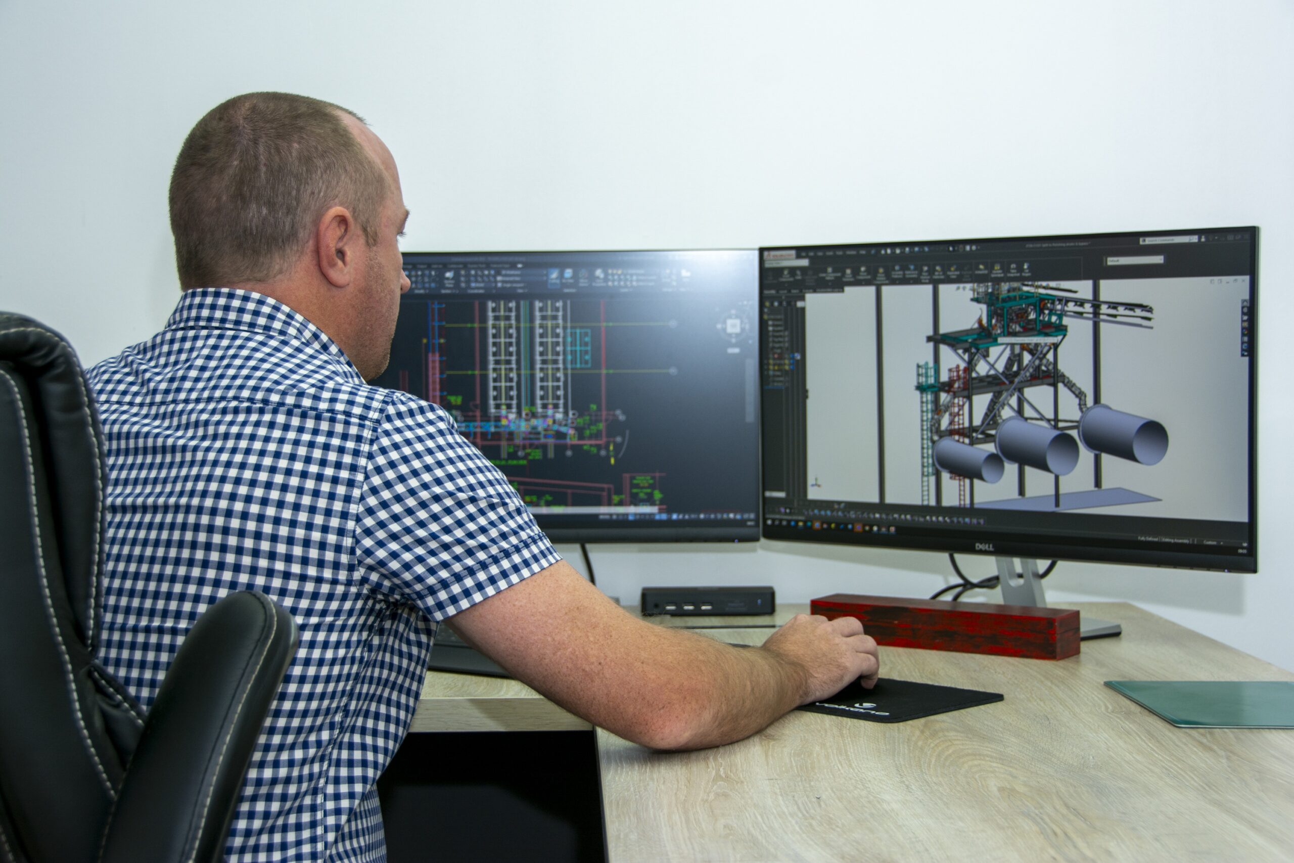 Weba Chute Systems Technical Director, Dewald Tintinger, reviewing a transfer chute as part of the company’s customised design process.