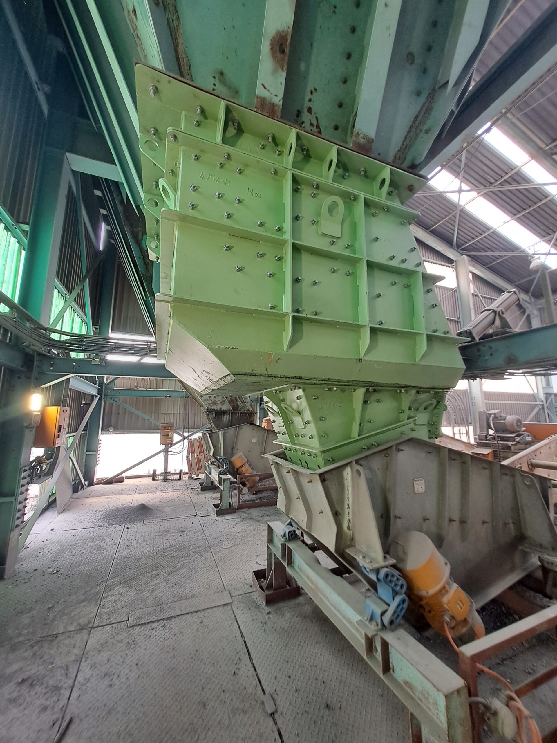 A Weba surge bin discharge chute feeding onto a low head screen vibrating feeder at a platinum mine in South Africa’s North West Province, engineered for optimal flow control and extended wear life.